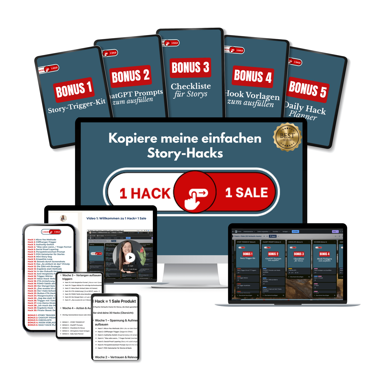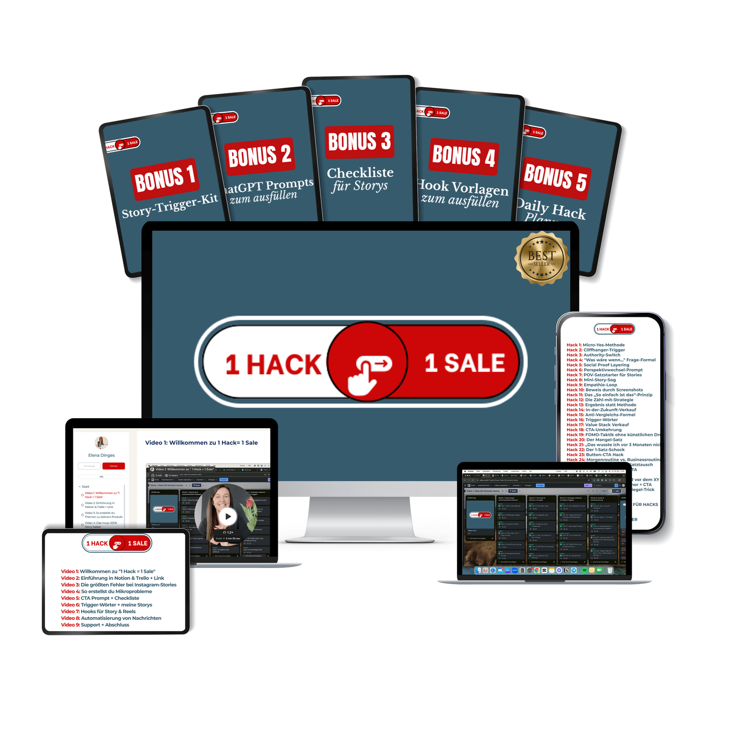 Dann kannst du die 30 Hacks einfach auf deine verschiedenen Produkte aufteilen, das zeige ich auch im Video.