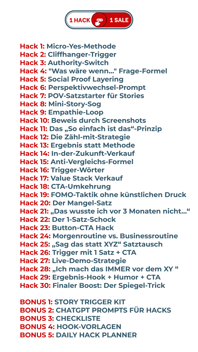 30 STORY-HACKS, die mit nur 2 Slides pro Tag, automatisch für dich verkaufen.